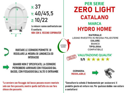 Copriwater Zero Light Catalano legno rivestito in resina poliestere bianco Soft Close