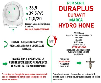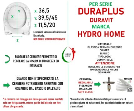 Copriwater Forma a D fissaggio dall’alto Soft Close e Sgancio Rapido compatibile con vari modelli termoindurente bianco