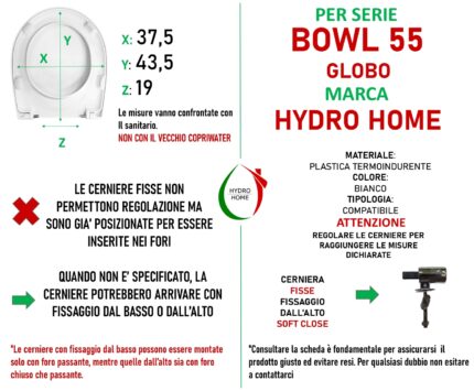 Copriwater Bowl 55 Globo termoindurente avvolgente bianco Sgancio Rapido