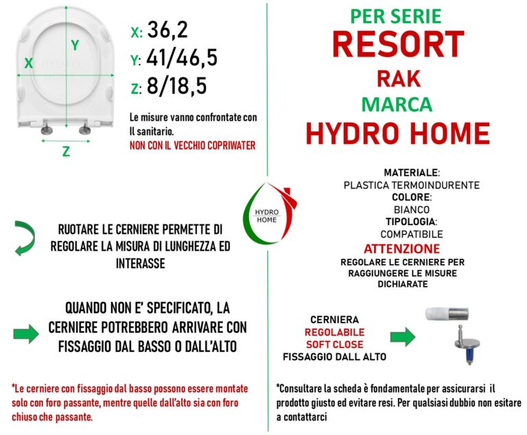 Cerniere regolabili Soft Close fissaggio dall alto per copriwc termoindurente con tassello rettangolare
