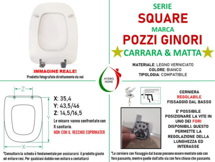 Copriwater Square Pozzi Ginori legno rivestito in resina poliestere bianco