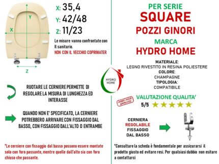 Copriwater Square Pozzi Ginori legno rivestito in resina poliestere Champagne