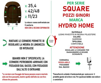 Copriwater Square Pozzi Ginori legno rivestito in resina poliestere Marrone