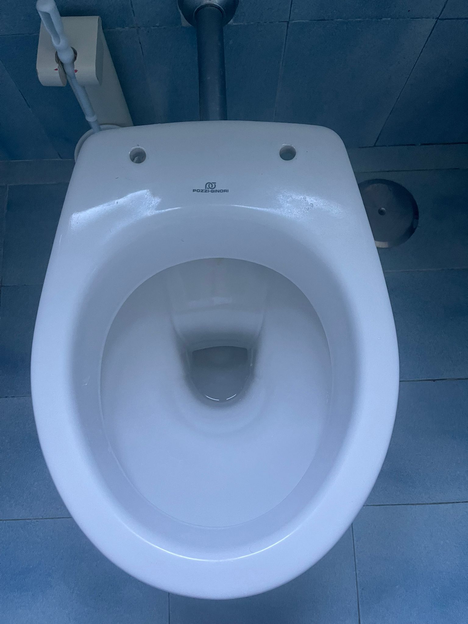 Il caso PG004 riguarda un WC Pozzi Ginori molto diffuso, con fissaggio dall’alto e forma marcatamente squadrata. Il sanitario è facilmente riconoscibile per il bordo superiore geometrico, la vasca interna regolare e soprattutto per la parte posteriore piena e aderente al muro, elemento distintivo rispetto ad altri modelli simili.
