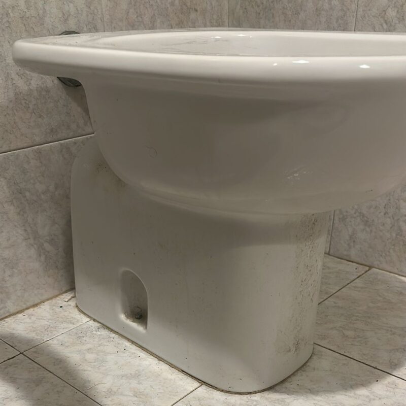 Il sanitario è facilmente riconoscibile per la rientranza ovale presente sul piede, un dettaglio distintivo rispetto ad altri modelli simili della stessa marca.