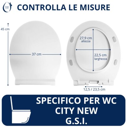 Copriwater City New G.S.I. SLIM Soft Close e Sgancio Rapido fissaggio dall’alto termoindurente bianco