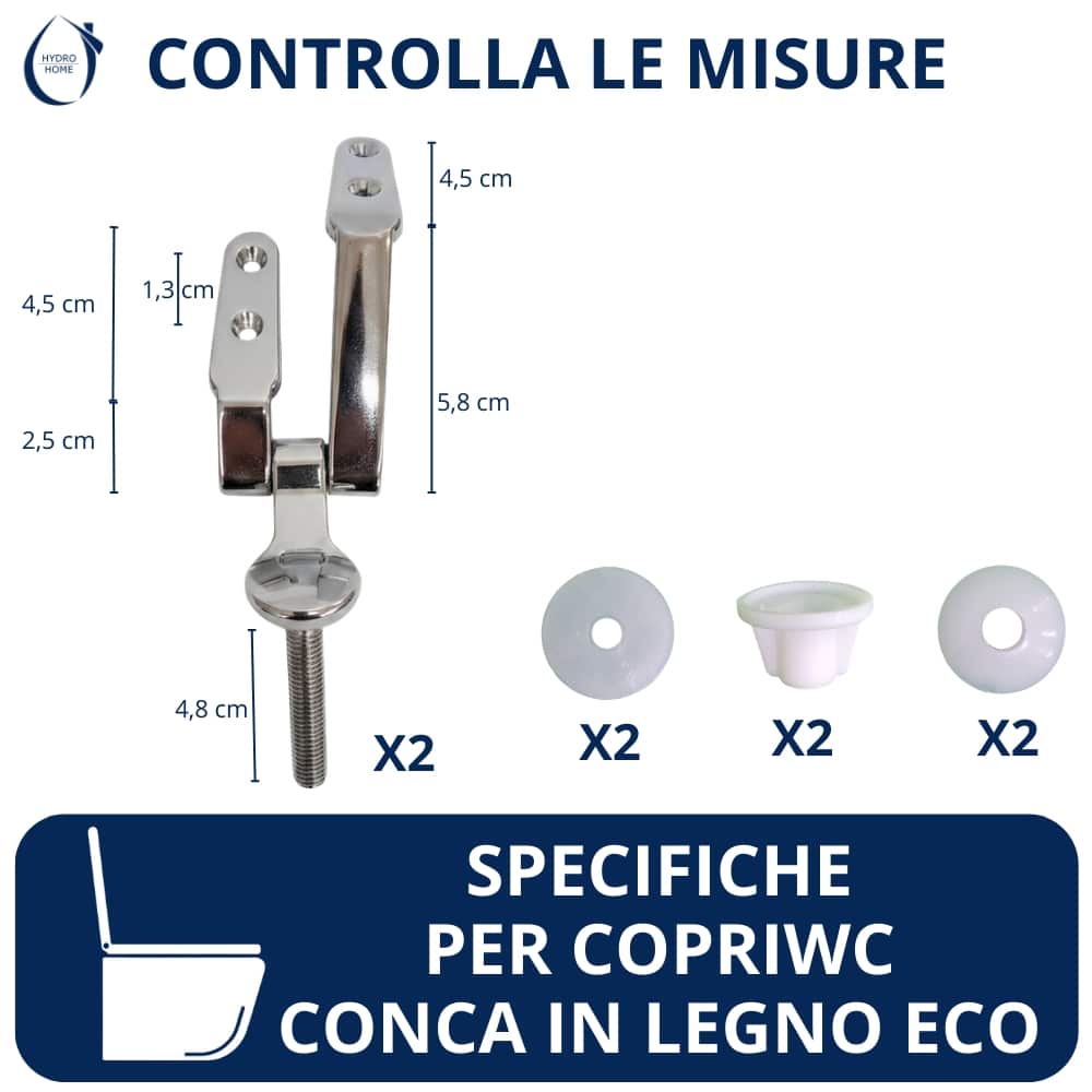Cerniere per copriwater Conca legno MDF Eco inclinate cromate
