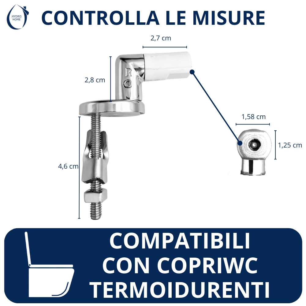 Cerniere fisse: A differenza delle regolabili non hanno possibilità di gestire le dimensione del sedile e vengono montate solitamente su copriwc come originali o originali. Anche queste possono essere con fissaggio dal basso o dall’alto.