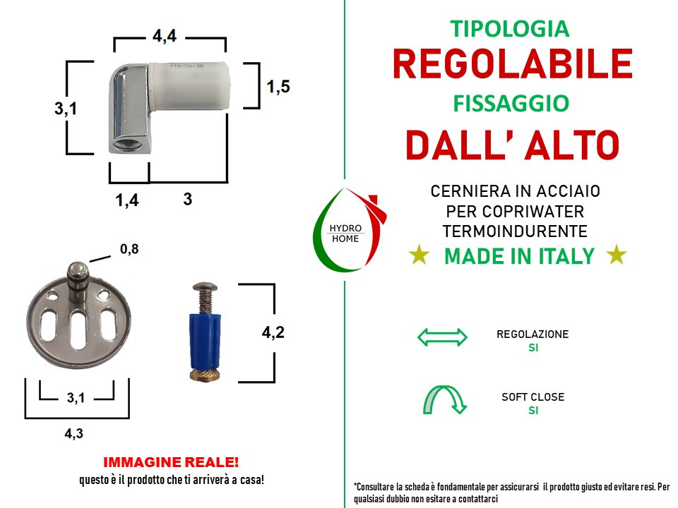 Cerniere Soft Close regolabili ad espansione per copriwater termoindurente