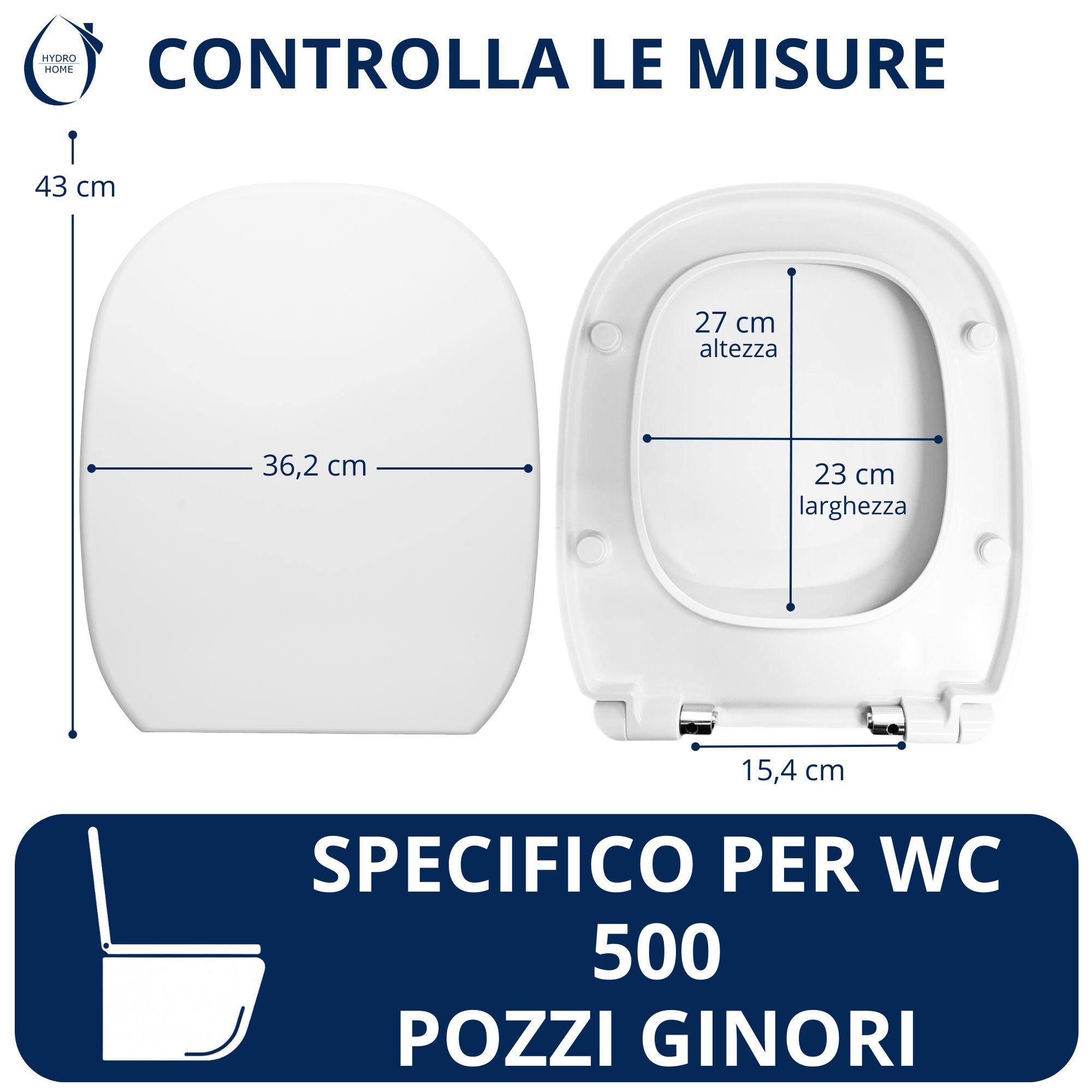La forma e le misure sono fedeli all’originale Pozzi Ginori, assicurando una perfetta aderenza al vaso Serie 500.