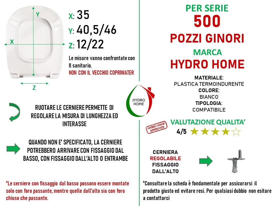 COSA VUOL DIRE “COMPATIBILE”?: Solitamente i copriwater compatibili si adattano a più di una serie di sanitari anche grazie alle cerniere regolabili che permettono di gestire lunghezza ed interasse. Questi prodotti si installano perfettamente sulla serie riportata in descrizione. Il connubio tra “Compatibile” e “Top Quality” è un ottima soluzione, non da meno del prodotto originale, ed è quella più scelta dai nostri clienti.