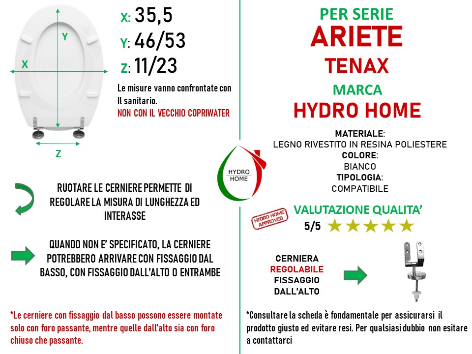 COSA VUOL DIRE “COMPATIBILE”?: Solitamente i copriwater compatibili si adattano a più di una serie di sanitari anche grazie alle cerniere regolabili che permettono di gestire lunghezza ed interasse. Questi prodotti si installano perfettamente sulla serie riportata in descrizione. Il connubio tra “Compatibile” e “Top Quality” è un ottima soluzione, non da meno del prodotto originale, ed è quella più scelta dai nostri clienti.
