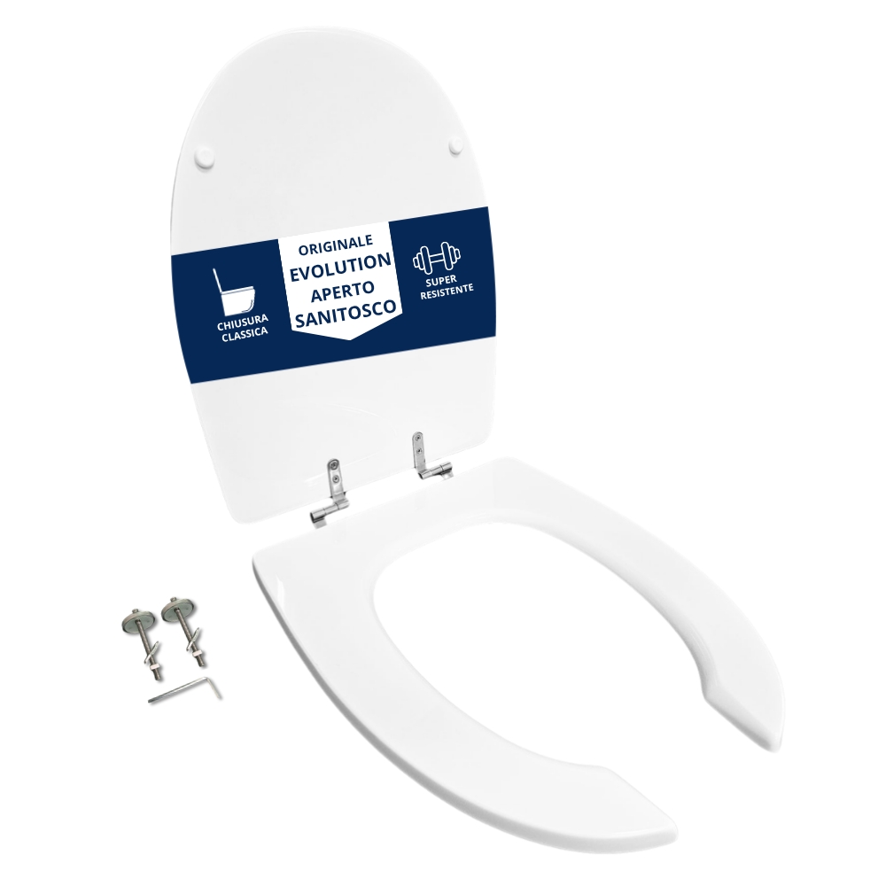Copriwater Disabili Originale Evolution Aperto Sanitosco legno rivestito in resina poliestere bianco