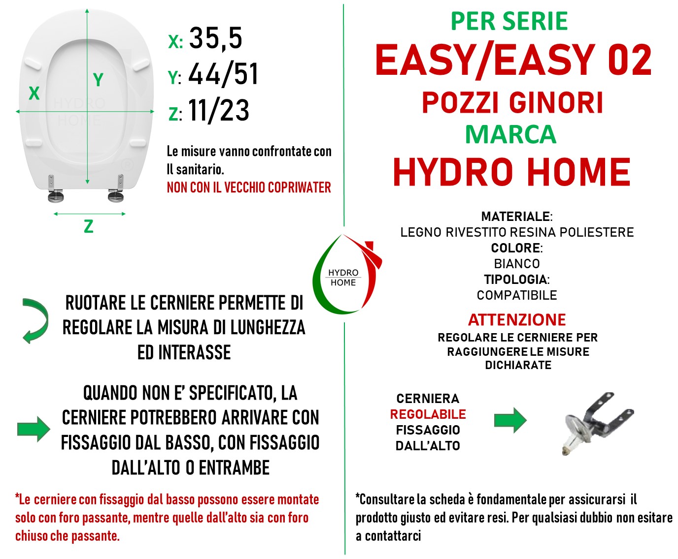 Sedile Copriwc legno rivestito in resina poliestere Top Quality compatibile con serie Easy e Easy 02 della ceramica POZZI GINORI