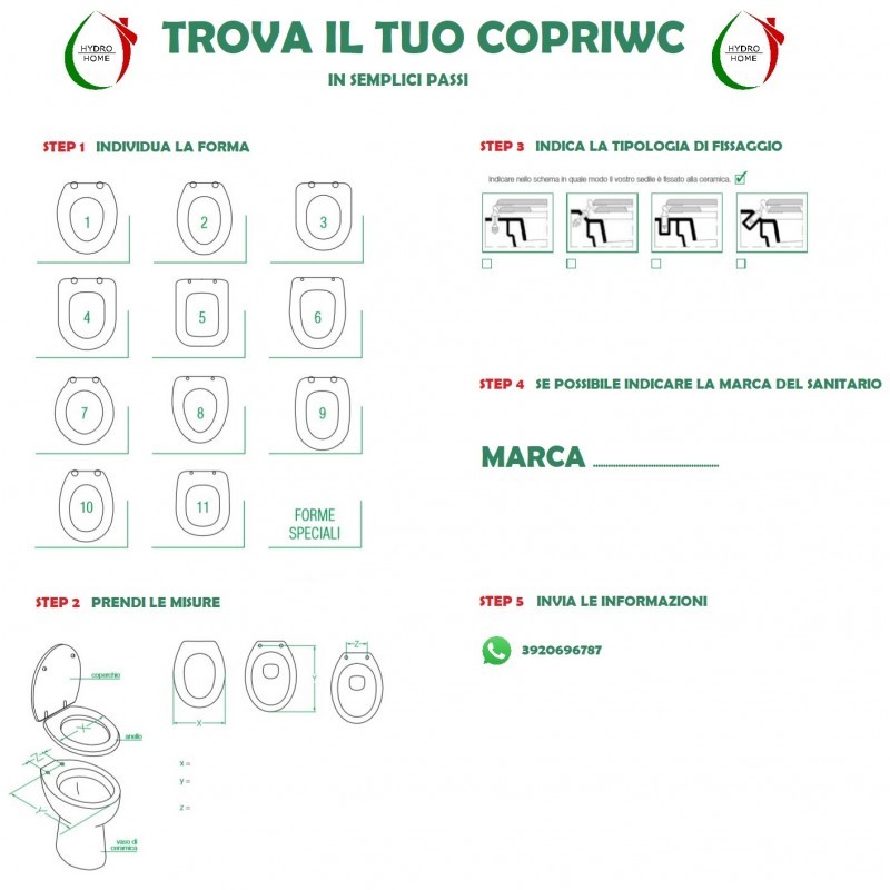 Invia delle foto del tuo WC da varie angolazioni e compila la scheda di rilevamento che trovi in ogni inserzione.