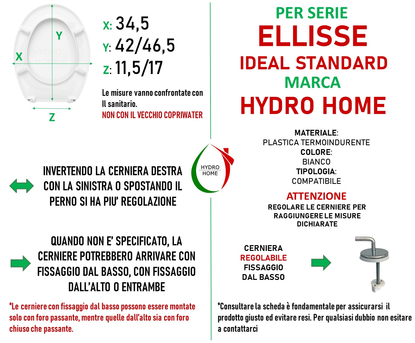 Sedile Copriwc termoindurente compatibile con serie Ellisse della ceramica IDEAL STANDARD