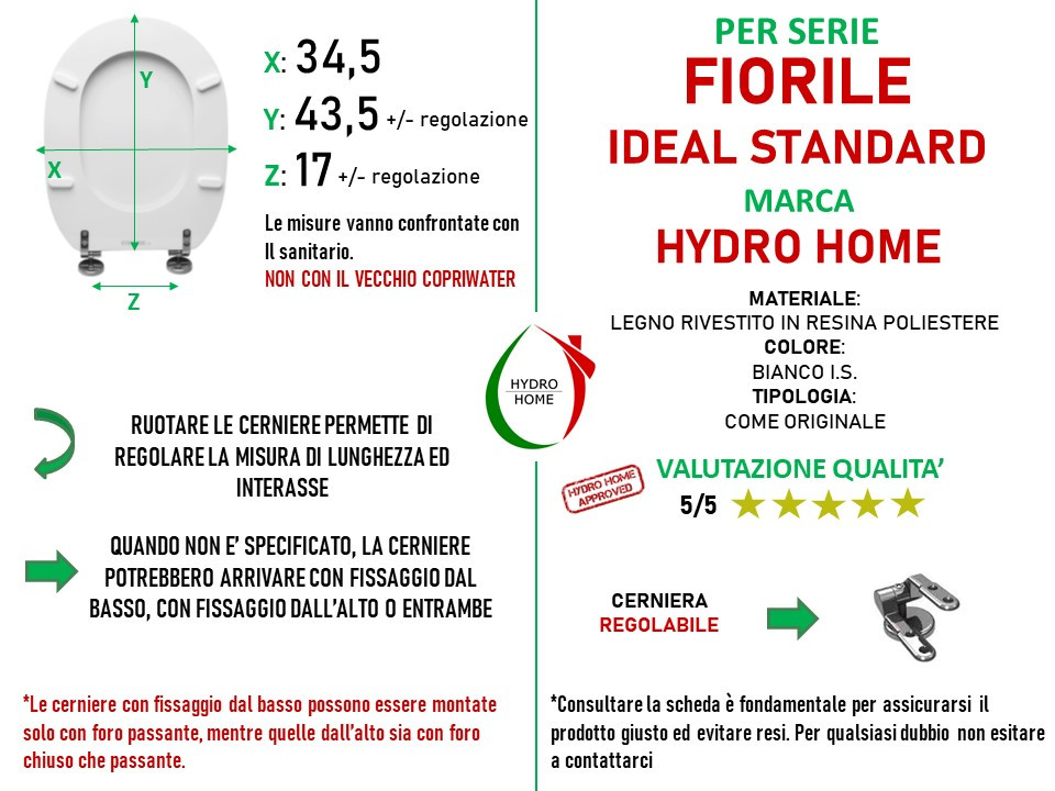 Sedile Copriwc legno rivestito in resina poliestere Top Quality COLORE BIANCO IDEAL STANDARD (o bianco sporco, vedere immagine differenza colori) compatibile con serie Fiorile della ceramica IDEAL STANDARD