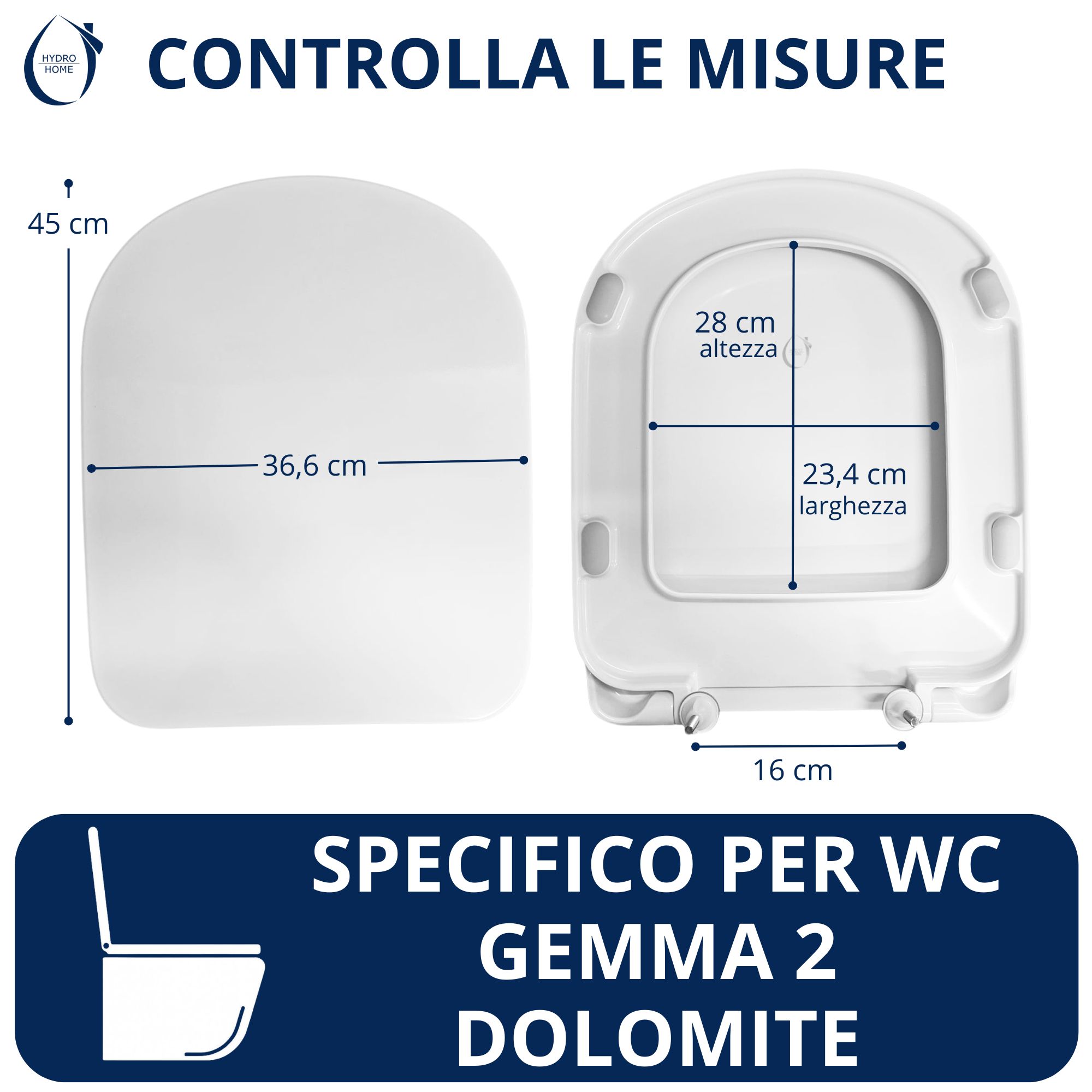 Copriwater Gemma 2 Dolomite termoindurente bianco come originale