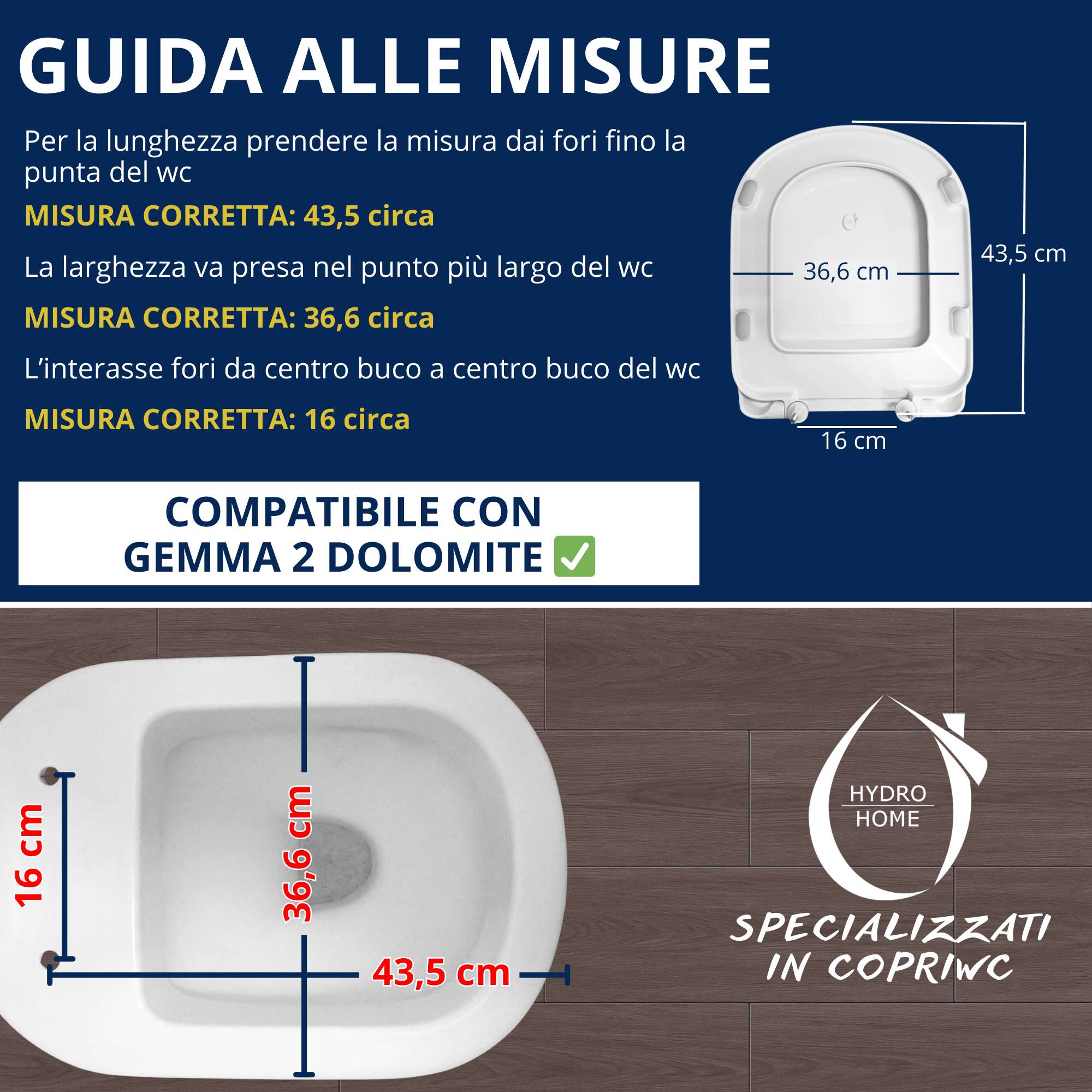 Invia delle foto del tuo WC da varie angolazioni e compila la scheda di rilevamento che trovi in ogni inserzione.