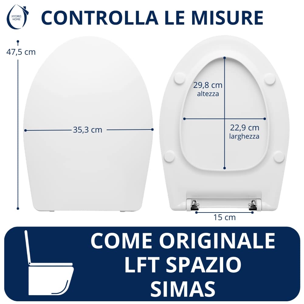 Copriwater LFT Spazio Simas Slim Soft Close termoindurente bianco come originale