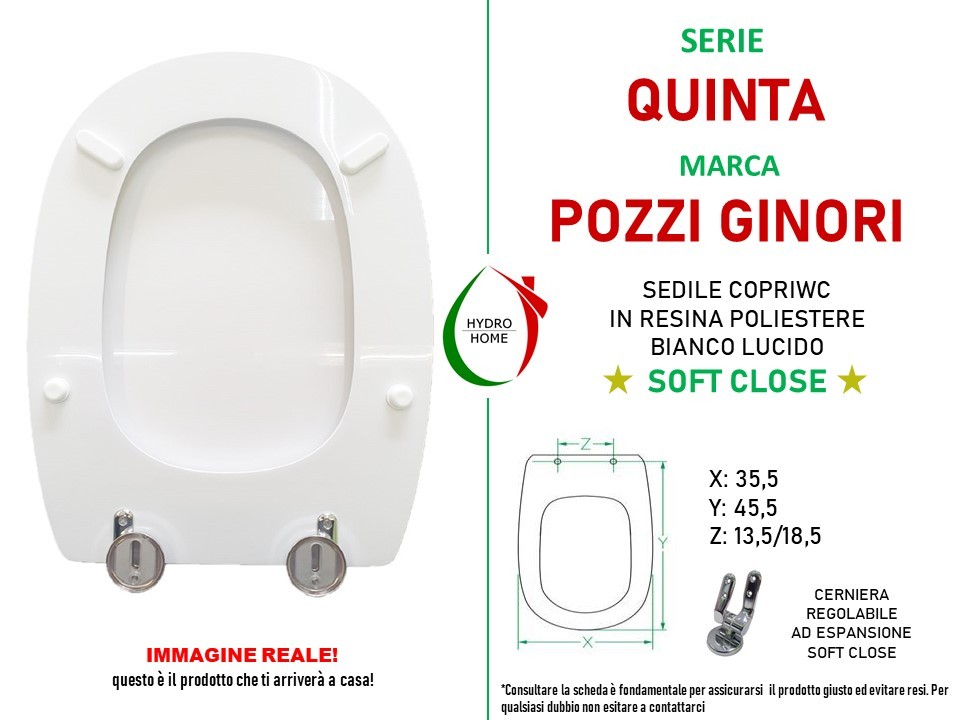 Sedile Copriwc legno rivestito in resina poliestere Top Quality con chiusura rallentata compatibile con serie Quinta della ceramica POZZI GINORI