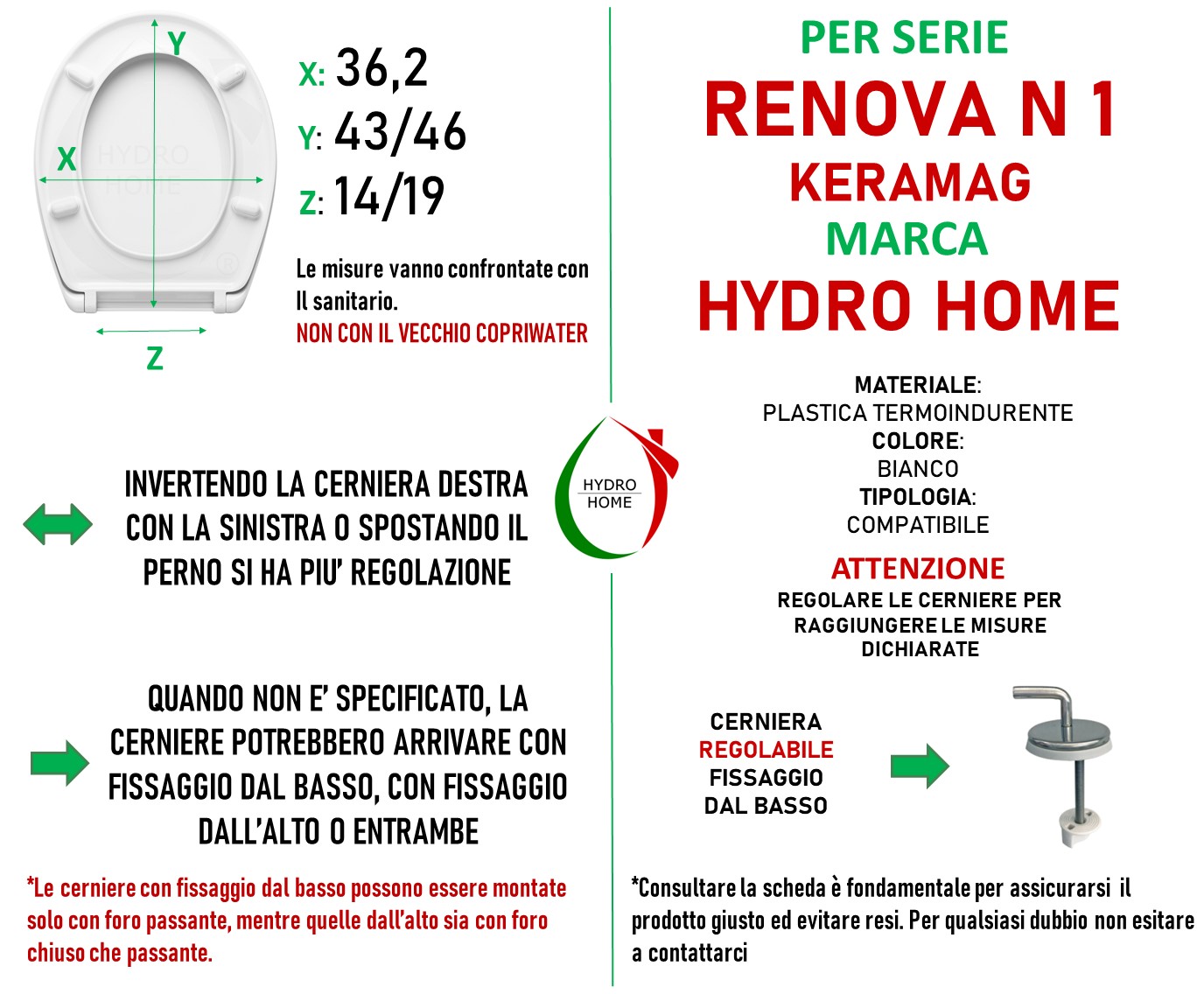 COSA VUOL DIRE “COMPATIBILE”?: Solitamente i copriwater compatibili si adattano a più di una serie di sanitari anche grazie alle cerniere regolabili che permettono di gestire lunghezza ed interasse. Questi prodotti si installano perfettamente sulla serie riportata in descrizione. Il connubio tra “Compatibile” e “Top Quality” è un ottima soluzione, non da meno del prodotto originale, ed è quella più scelta dai nostri clienti.