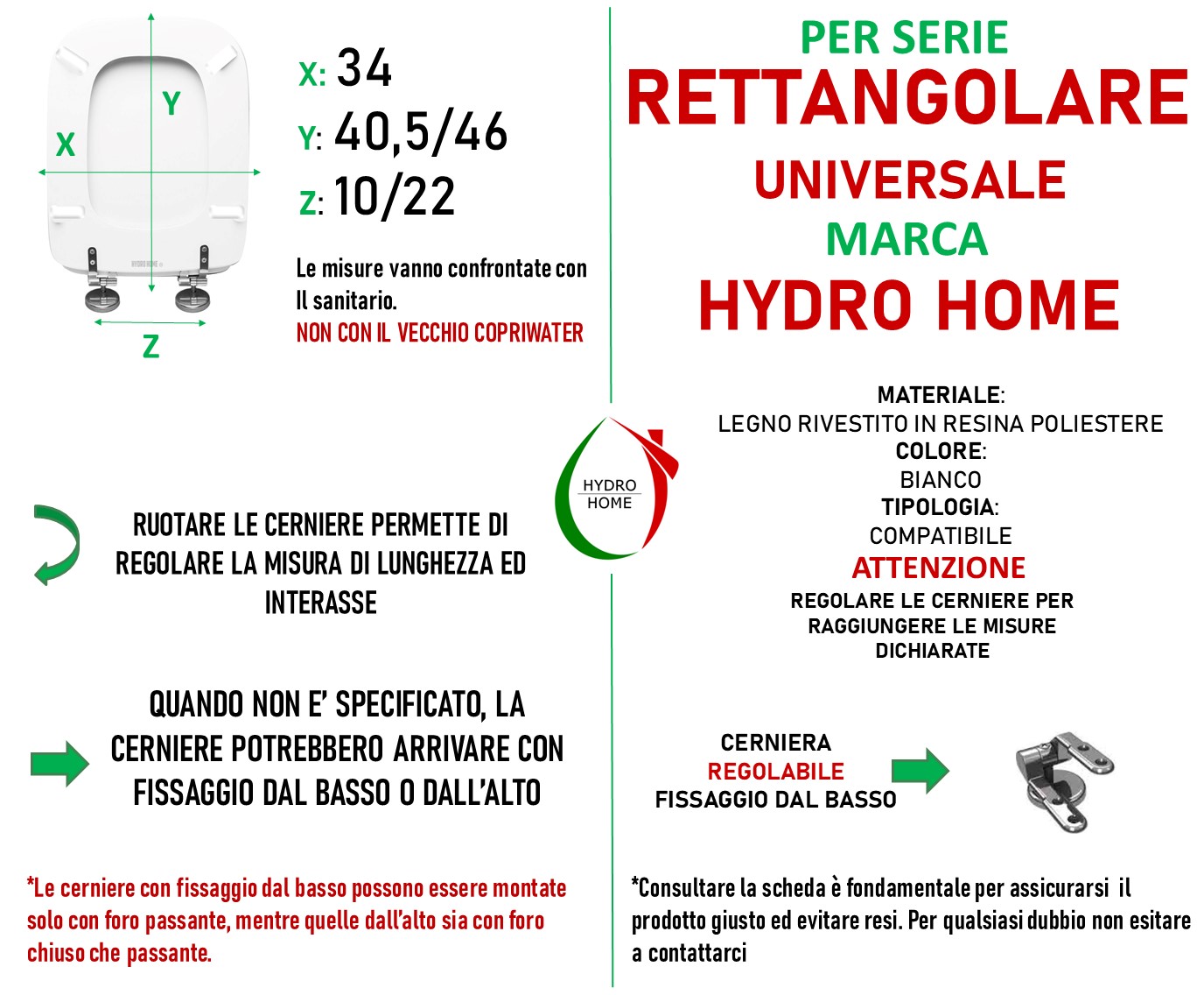 COSA VUOL DIRE “COMPATIBILE”?: Solitamente i copriwater compatibili si adattano a più di una serie di sanitari anche grazie alle cerniere regolabili che permettono di gestire lunghezza ed interasse. Questi prodotti si installano perfettamente sulla serie riportata in descrizione. Il connubio tra “Compatibile” e “Top Quality” è un ottima soluzione, non da meno del prodotto originale, ed è quella più scelta dai nostri clienti.