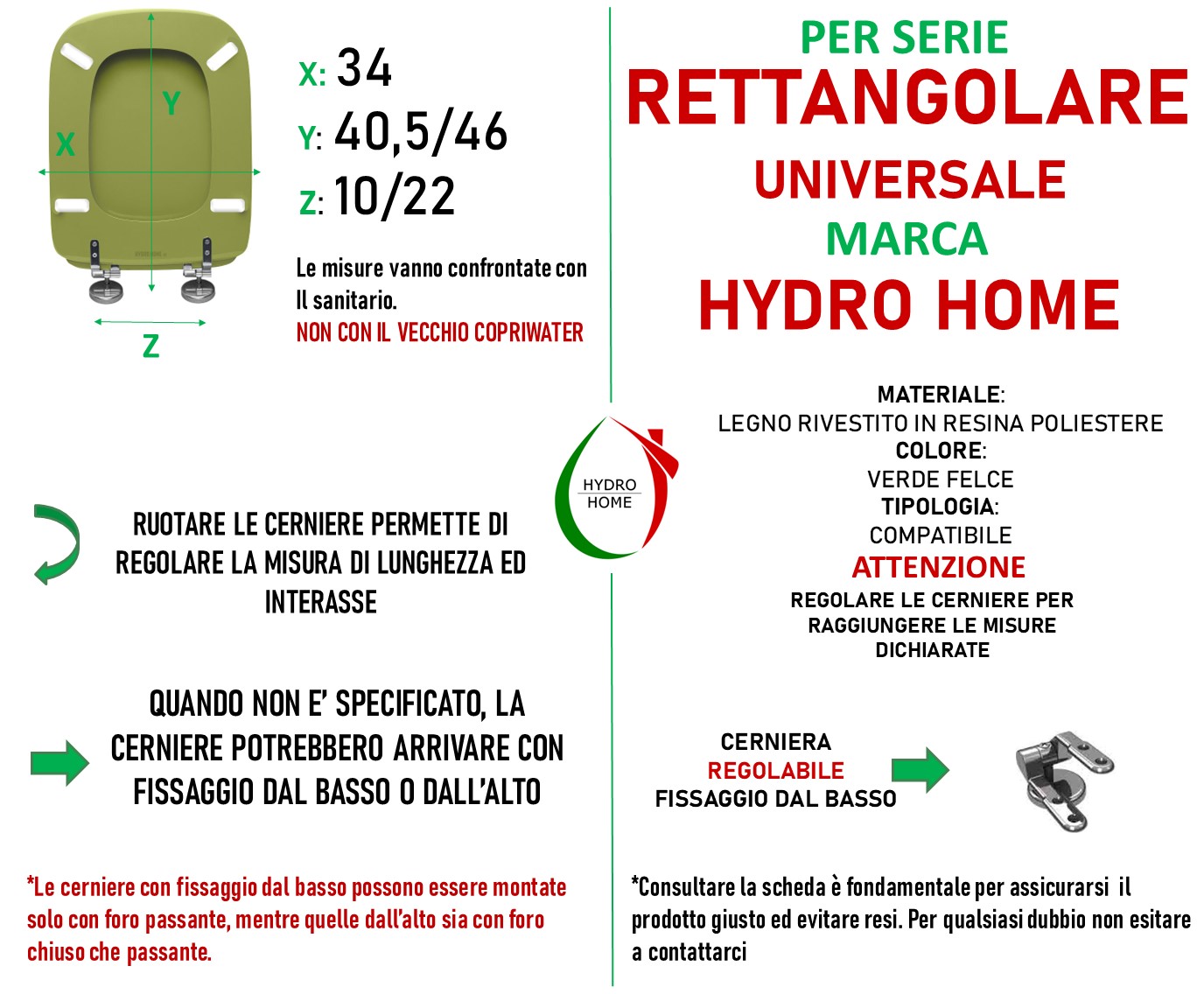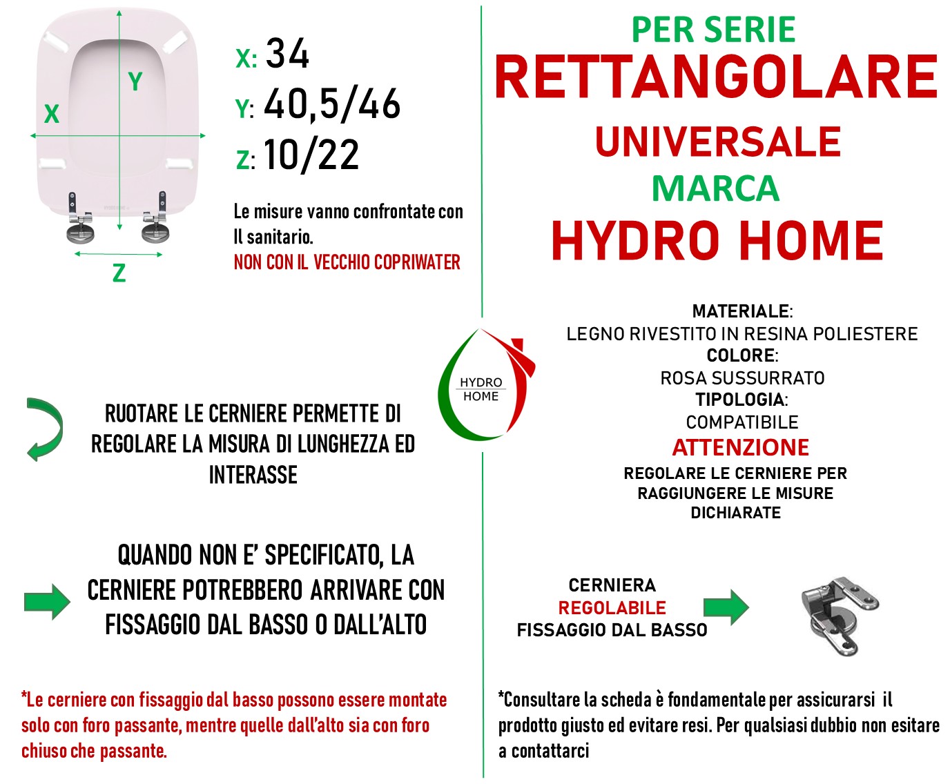Sedile Copriwc legno rivestito in resina poliestere Top Quality forma Rettangolare Universale con cerniere DRITTE regolabili
