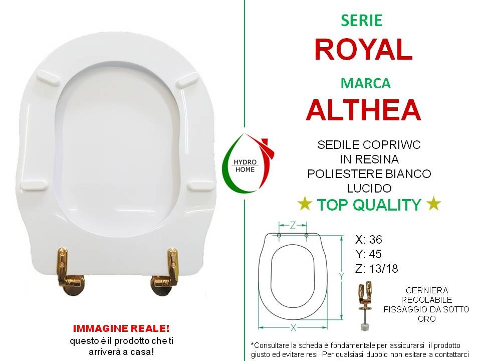 Sedile Copriwc legno rivestito in resina poliestere Top Quality cerniere colore ORO compatibile con serie Royal della ceramica ALTHEA