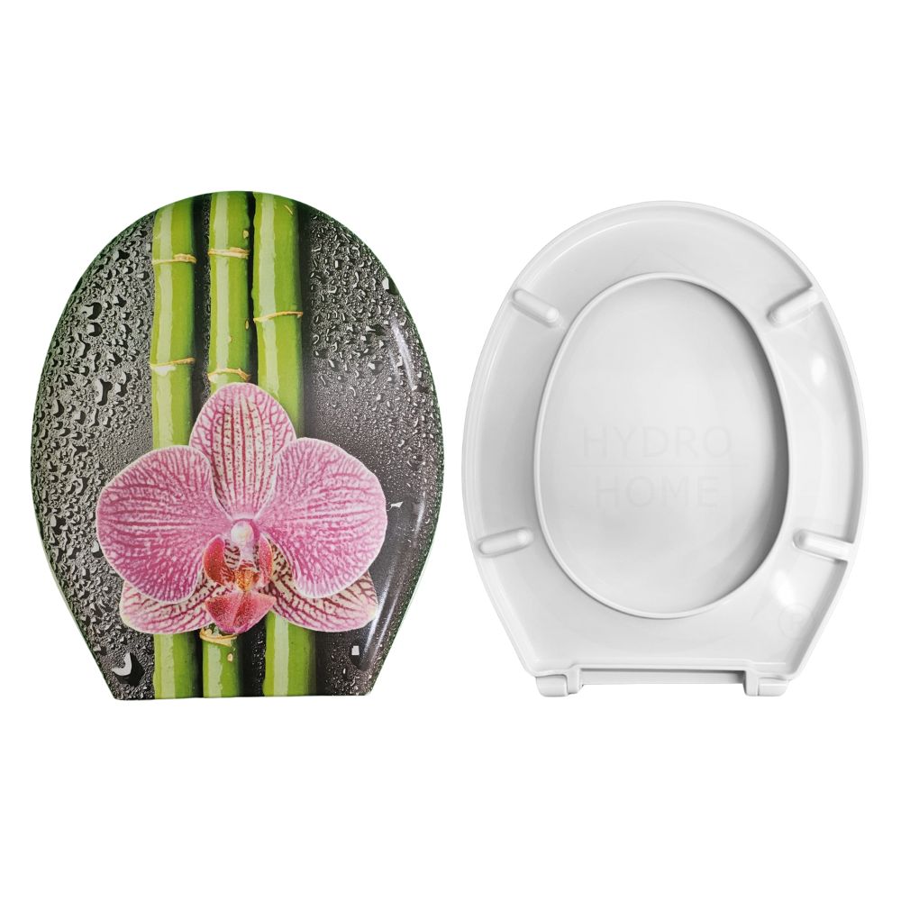 Copriwater Universale Ovale Stampato Orchidea compatibile con vari modelli termoindurente bianco