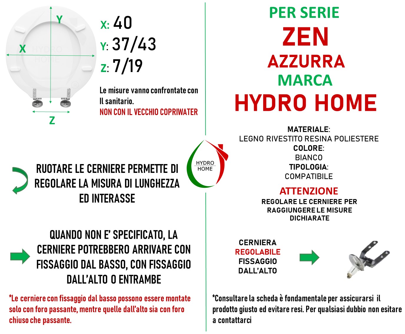 Sedile Copriwc legno rivestito in resina poliestere Top Quality compatibile con serie Zen della ceramica AZZURRA