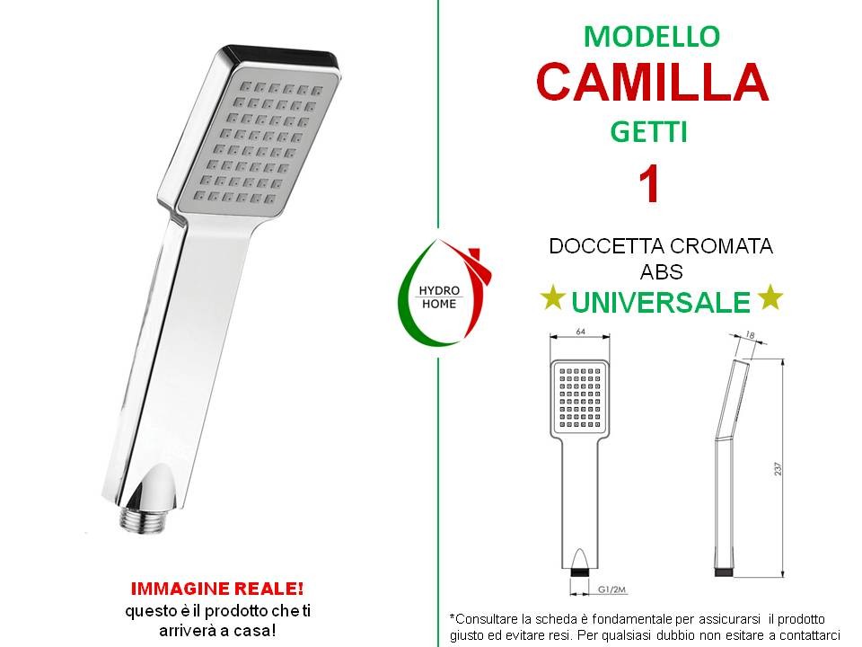 Doccetta Camilla anticalcare monogetto 64×18 H237. Materiale: ABS. Attacco 1/2 pollice