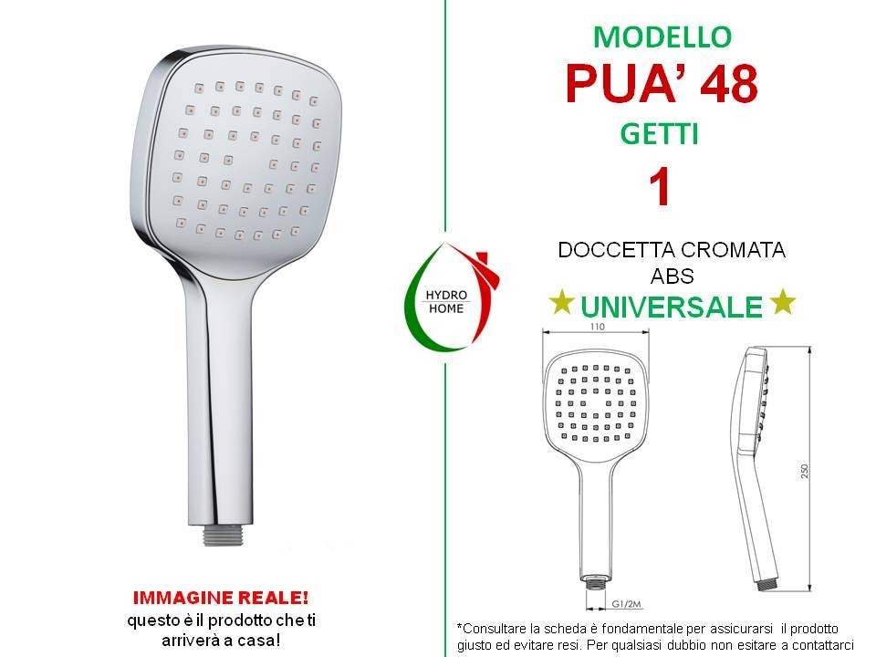 Doccetta Puà 48 anticalcare monogetto L110 H250. Materiale: ABS. Attacco 1/2 pollice