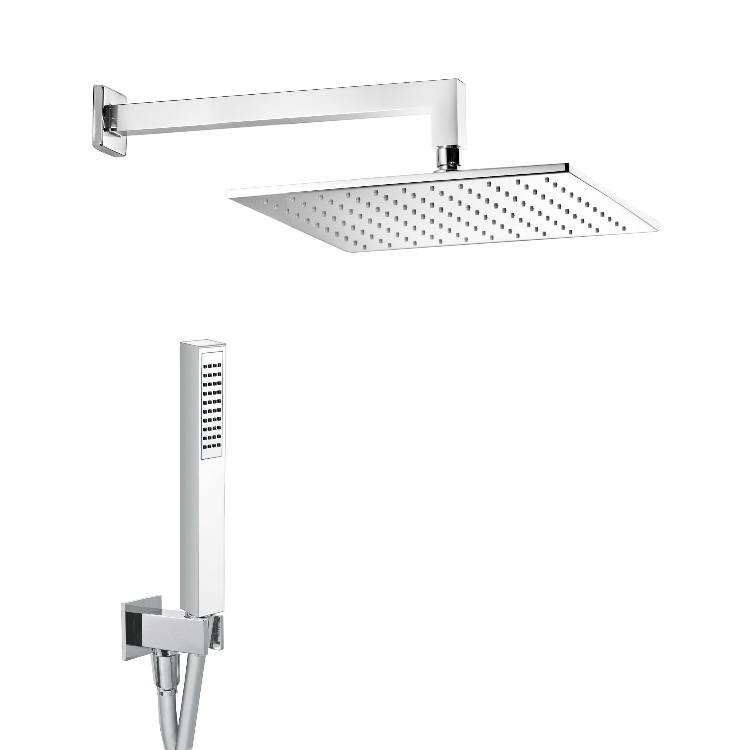 Kit doccia in ottone cromato, comprende supporto con presa acqua incorporata, Braccio Doccia, Soffione Quadro, Flessibile da 1,5 mt antitorsione e doccetta ABS.