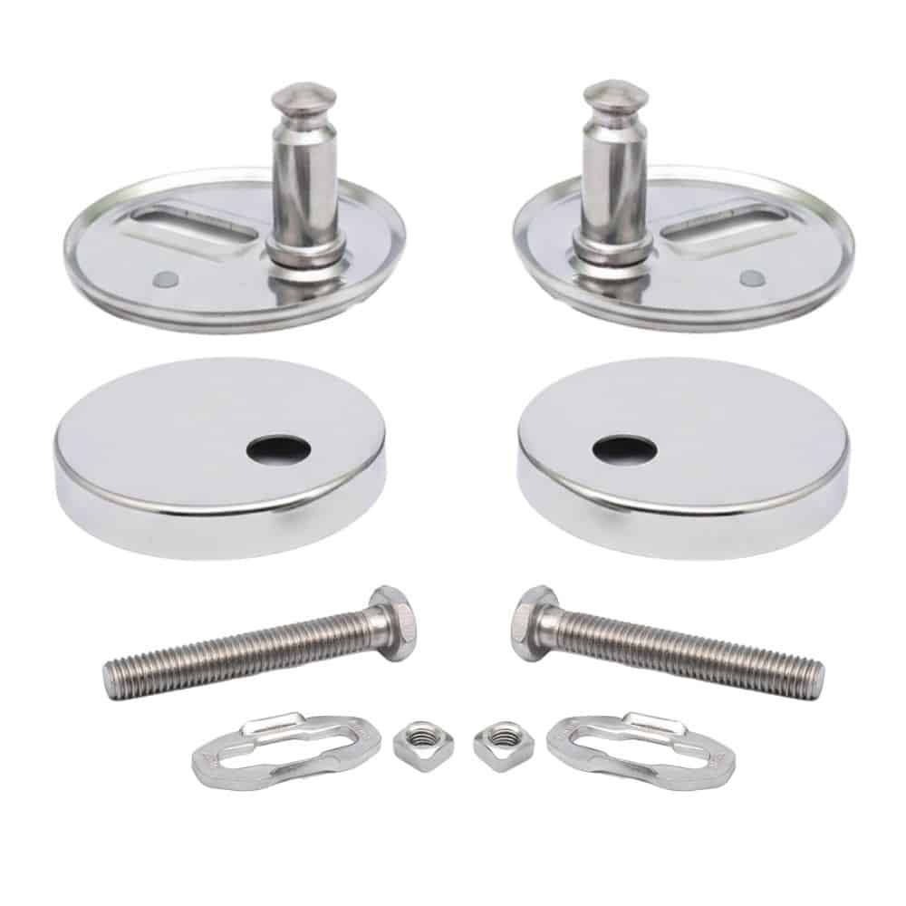 Il Kit Ripristino Cerniere – Sostituzione Dadi e Piastrine Persi è la soluzione ideale per chi, durante il montaggio del copriwater, ha fatto accidentalmente cadere il dado di fissaggio all’interno del WC.