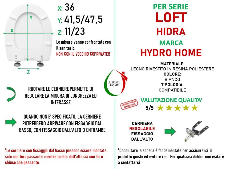 COSA VUOL DIRE “COMPATIBILE”?: Solitamente i copriwater compatibili si adattano a più di una serie di sanitari anche grazie alle cerniere regolabili che permettono di gestire lunghezza ed interasse. Questi prodotti si installano perfettamente sulla serie riportata in descrizione. Il connubio tra “Compatibile” e “Top Quality” è un ottima soluzione, non da meno del prodotto originale, ed è quella più scelta dai nostri clienti.