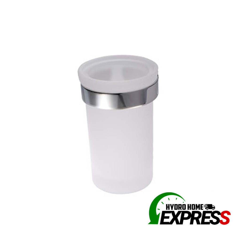 Porta Spazzolini da appoggio Linea Nuda, bicchiere in vetro e parti metalliche in ottone cromato. Completamente MADE IN ITALY.