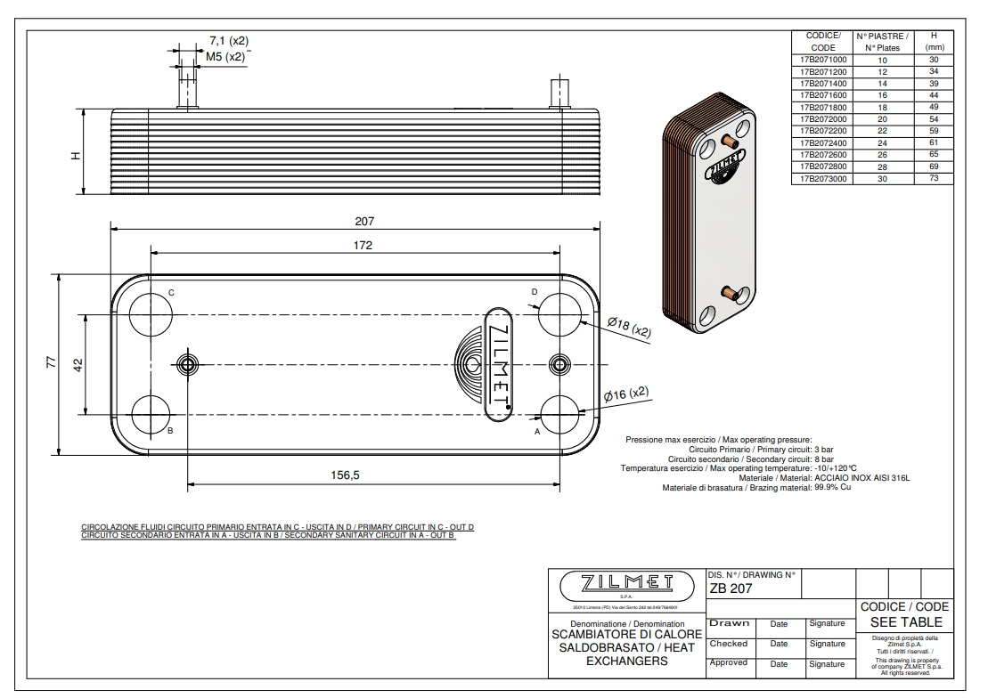 Questo scambiatore primario OR. a 14 piastre è un ricambio commerciale progettato per sostituire lo scambiatore di calore installato su diversi modelli di caldaie Baxi. È dotato di attacchi ad innesto, un interasse di fissaggio da 156,5 mm, e una struttura a piastre studiata per garantire un’elevata efficienza nello scambio termico tra circuito primario e sanitario. Le dimensioni e la configurazione lo rendono pienamente compatibile con le caldaie Baxi della serie Luna (a partire dall’anno 2000) e con alcuni modelli Argo.