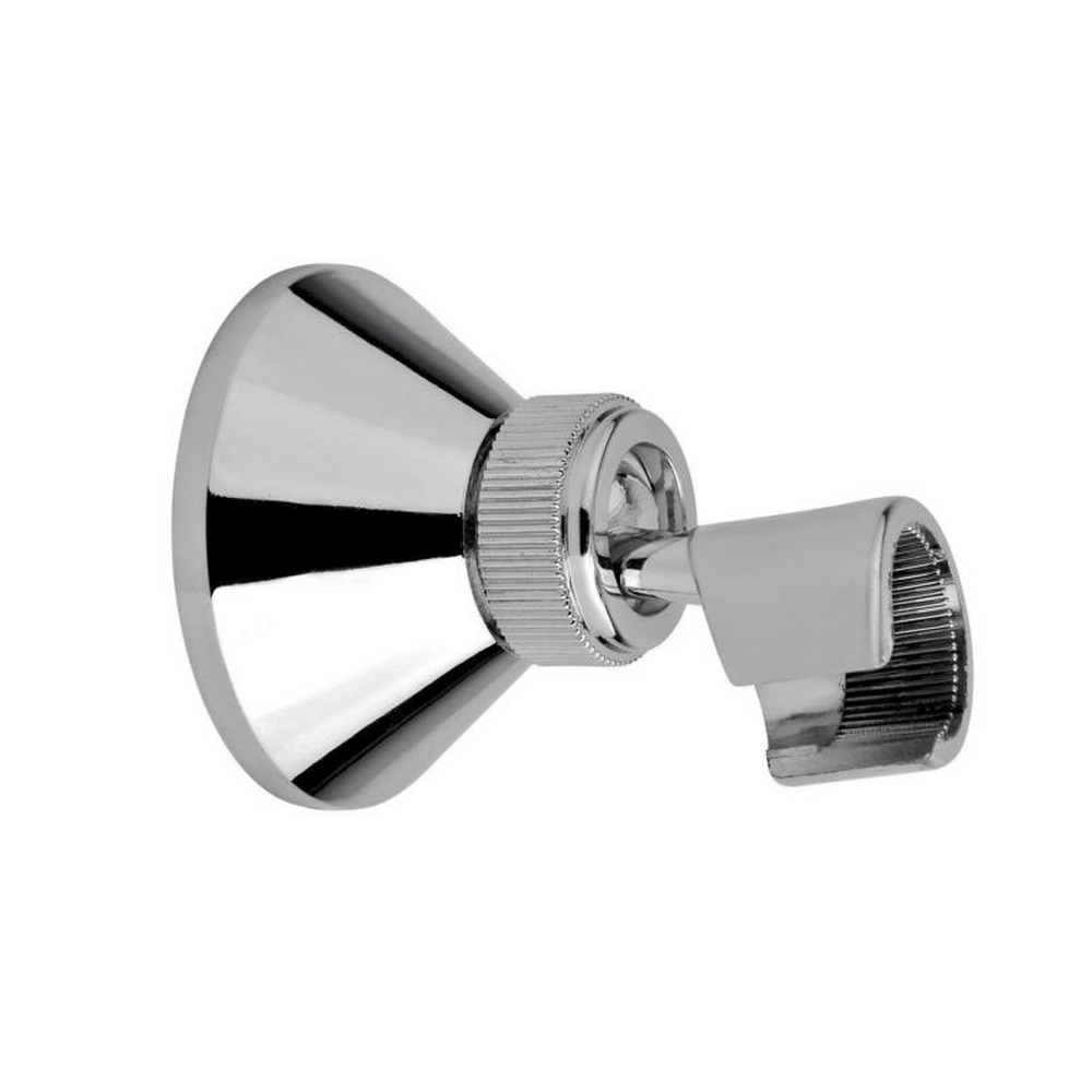 Supporto doccia a muro per flessibile attacco conico. Materiale ottone cromato, comprende vite e stop.