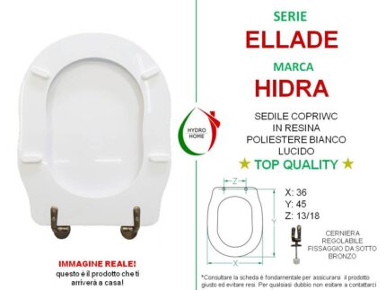 Copriwater Ellade Hidra legno rivestito in resina poliestere bianco cerniere bronzo