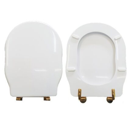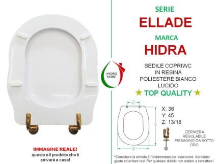 Copriwater Ellade Hidra legno rivestito in resina poliestere bianco cerniere oro