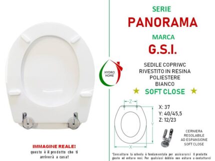 Copriwater Panorama G.S.I. legno rivestito in resina poliestere bianco Soft Close