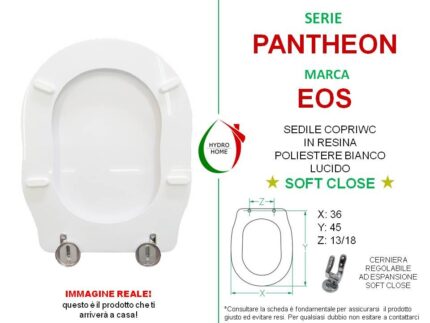 Copriwater Pantheon Eos legno rivestito in resina poliestere bianco Soft Close