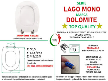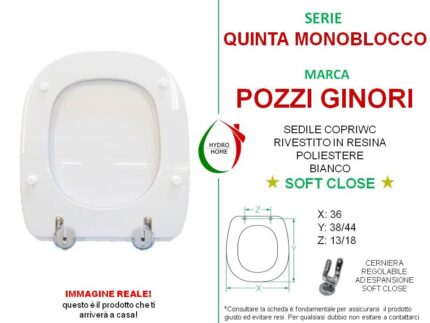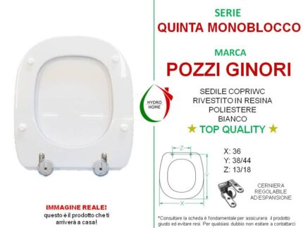 Copriwater Quinta Monoblocco Pozzi Ginori legno rivestito in resina poliestere bianco Soft Close