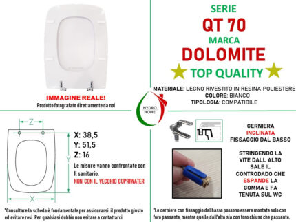 Copriwater QT 70 Dolomite legno rivestito in resina poliestere bianco